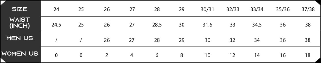 Bottoms-Numeric Sizing Chart(Jeans and pants)