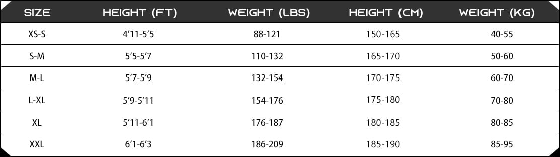 Tops-Unisex Size Chart